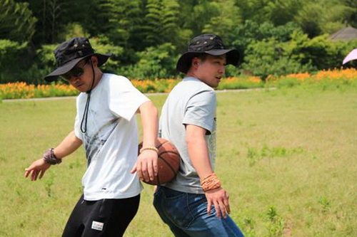 双人夹球互相依靠,放心的将后背交给队友